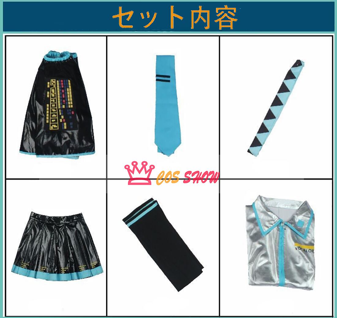 ボーカロイド 初音ミク 風 コスプレ衣装 cosplay エナメル革製 仮装 髪飾り+イヤフォン+ウィッグ 仮装 イベント クリスマス ハロウィン ステージ 文化祭 お祭り